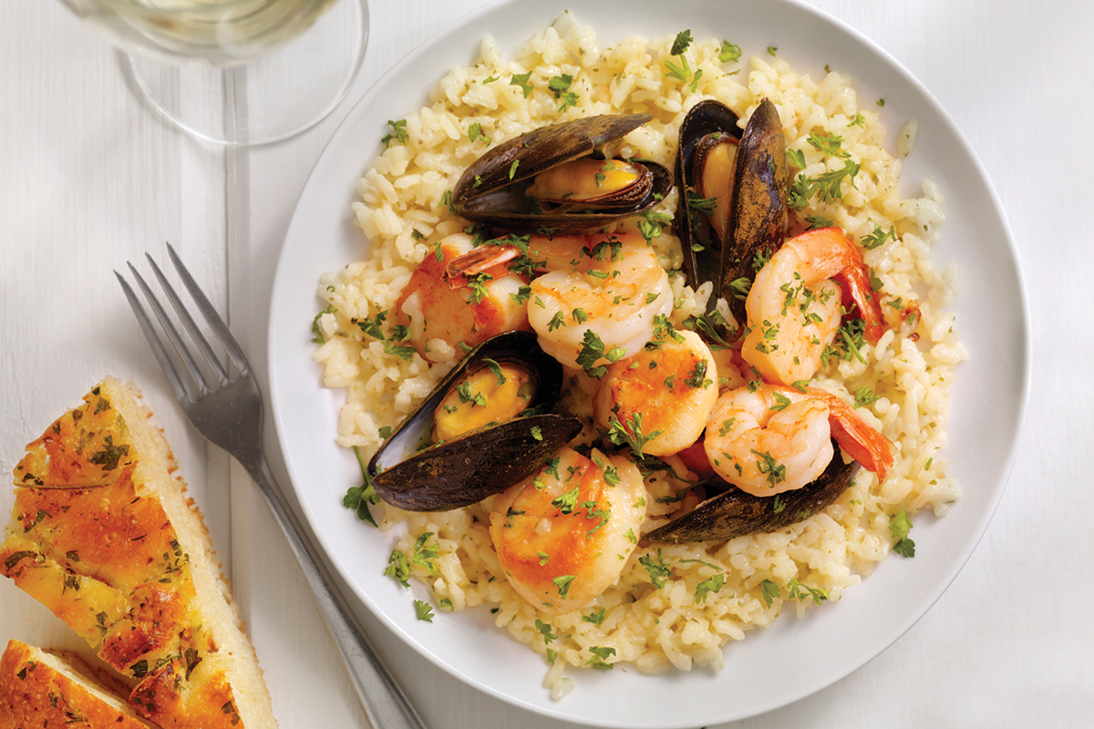 There are countless flavours of risotto often depending on seasonality or availability of ingredients. Risotto Milanese, flavoured with saffron, and finished with butter and Parmesan is certainly the most classic style and is traditionally served as an accompaniment to osso buco. Di Mario’s Trattoria in Burlington serves a delicious osso buco with mushroom risotto. Risotto ai frutti di mare would be served in coastal towns in Italy with mixed seafood, garlic, onion, white wine and fish stock. Casalinga Restaurant in Mississauga serves a fantastic Risotto Pescatore with shrimp, scallops, calamari and clams doused in a herb tomato sauce and finished with Parmesan, as well as a decadent Risotto ai Funghi with wild mushrooms, smoked Provolone and truffle purée. Rust Bistro in Burlington offers a risotto with seared scallops, asparagus and mushrooms. In the fall, risotto ai funghi porcini (Porcini mushroom) or risotto alla zucca (pumpkin) would be popular choices. In the springtime, Italians would serve risotto primavera (meaning spring) with any seasonal vegetables available like asparagus, spring onion, shallot, peas and broad beans. Loondocks in Burlington has a particularly exotic risotto with Tiger shrimp, wild boar bacon, asparagus and sweet potato.