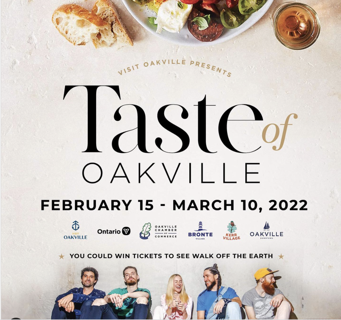 Thanks to the funding Taste of Oakville received as part of the Province of Ontario’s Reconnect Festival and Event Program, Taste customers will have the chance to win tickets to see Canadian Indie pop stars Walk Off The Earth perform at the Oakville Centre for the Performing Arts on March 31, 2022.