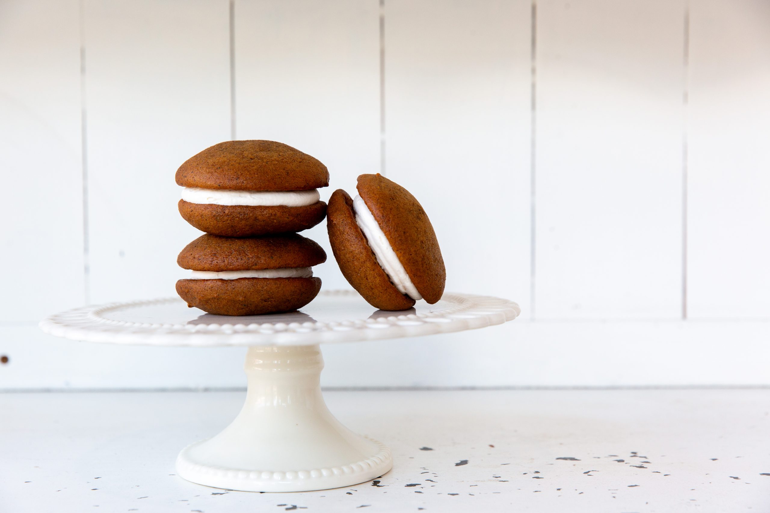 Spread or pipe 1-2 tablespoons marshmallow filling on flat sides of half the whoopie pies and then sandwich with the other half.